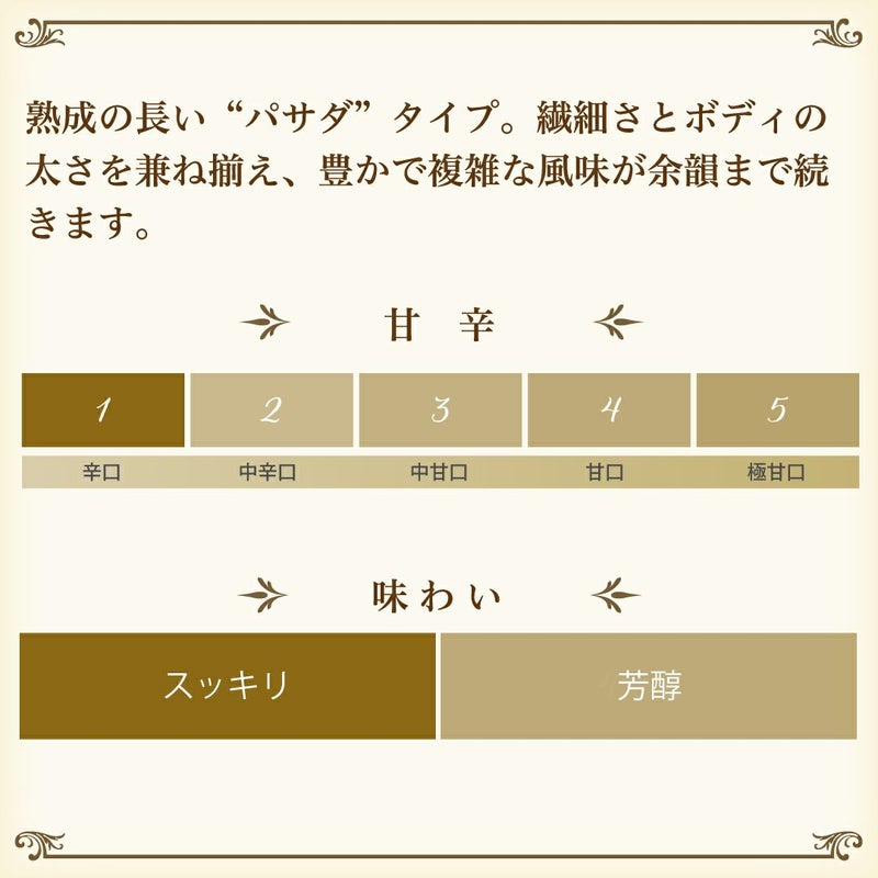 熟成の長い“パサダ”タイプのマンサニーリャ。繊細さとボディの太さが特徴で、豊かでより複雑な風味が余韻まで続きます。