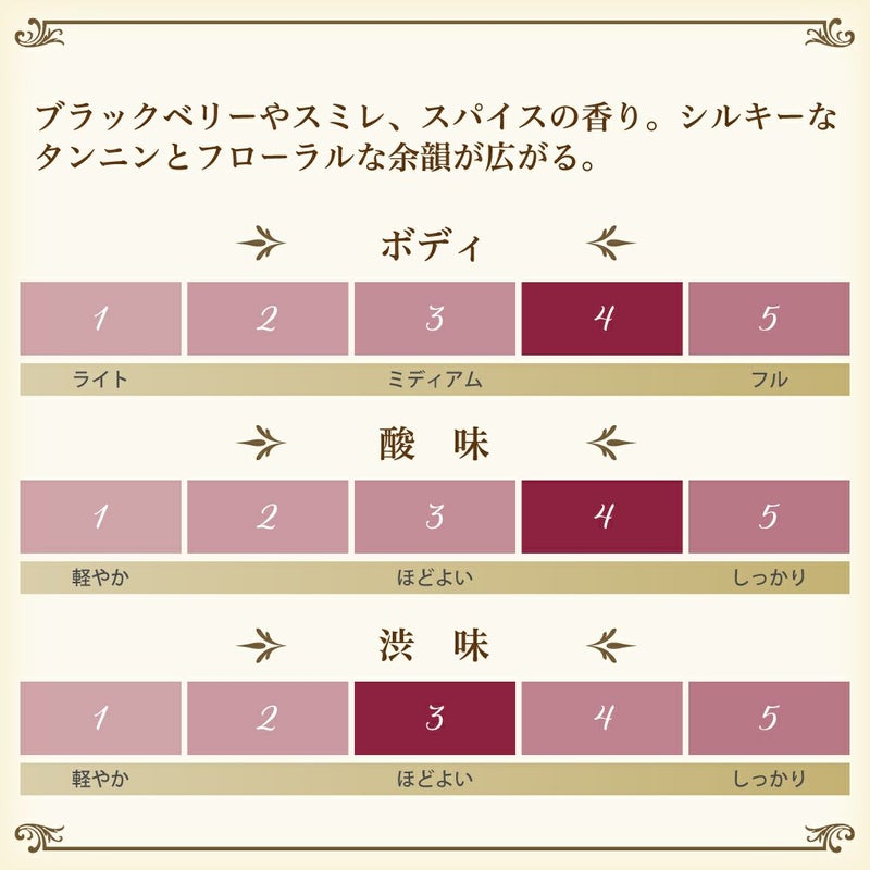 | ボディ | ミディアム-フル |