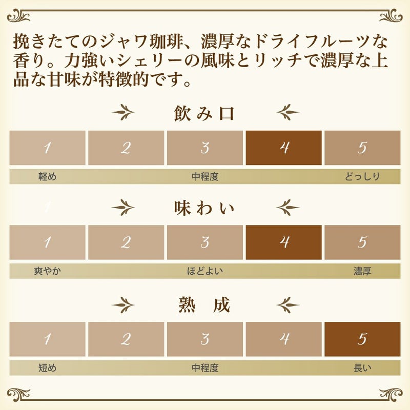 <香り> フレッシュで力強く、挽きたてのジャワ珈琲を想わせる甘くフルーティーな香り