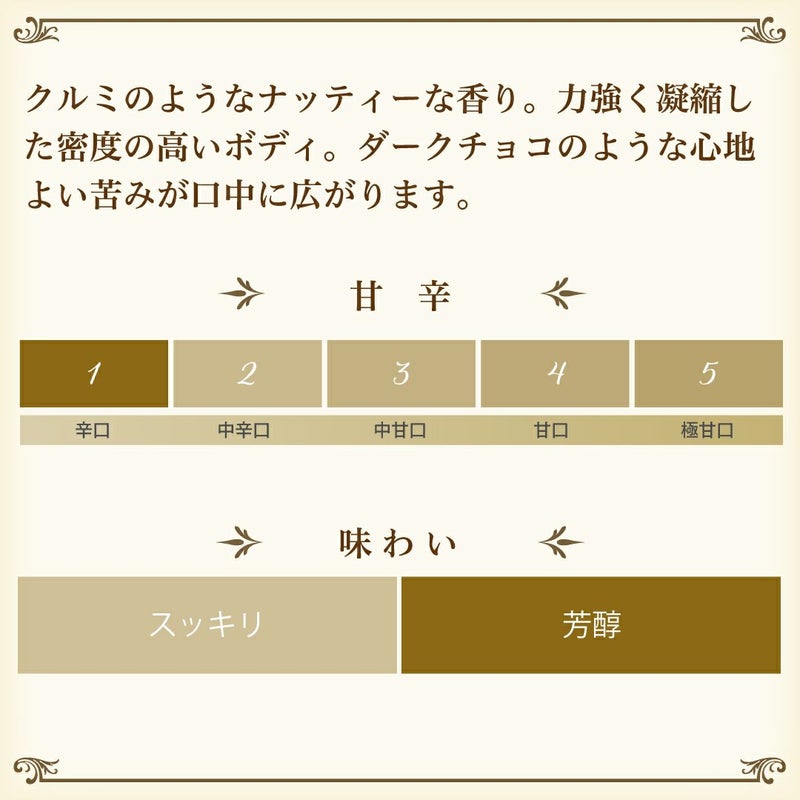 | 味わい(全体的な印象) | 芳醇 |