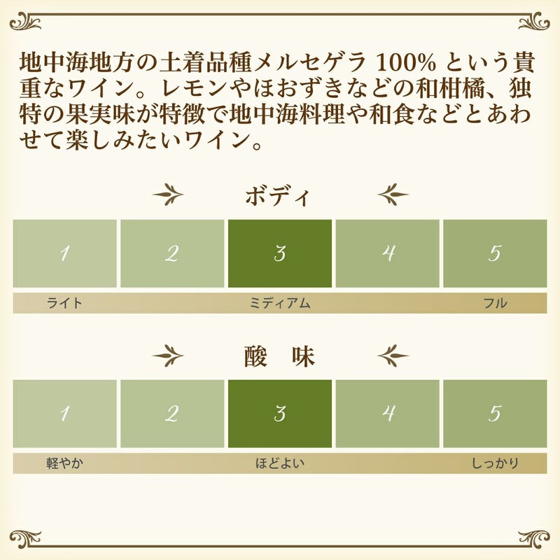 | セパージュ (ブドウ品種) | メルセゲラ100% |