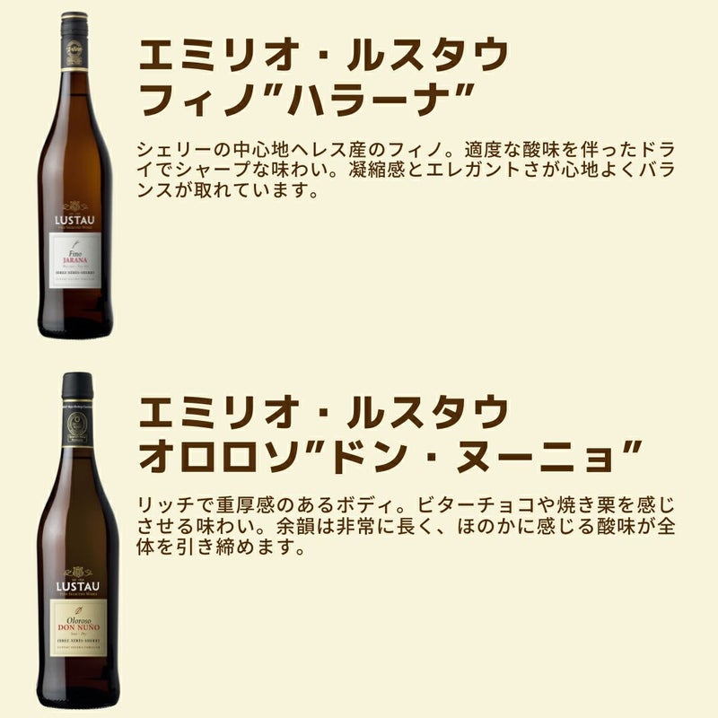 本当は辛口の飲み比べが欲しかったけど、SOLD OUTだったので入門セットを購入。大変リーズナブルに購入でき、おかげで、生ハム原木と共に良い年末を過ごしている。 普段から良く飲んでいるルスタウは安定の旨さ、特にオロロソは格別・文句なし! 今回セットのクリームの極甘口を初挑戦! 甘さの中にビターな香り、スイーツのお供がオススメ。 アイスクリームにかけたり、オレンジ系のチョコレートやケーキとのマリアージュが癖になる程ハマってしまった。